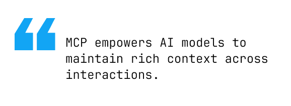 Unlike traditional API-based integrations or robotic process automations, MCP empowers AI models to maintain rich context across interactions. An AI agent can leverage context from a user’s request, query diverse tools or databases, and synthesize results into a cohesive response. This capability dismantles data silos. For instance, an AI assistant can seamlessly integrate customer data from a CRM, transaction history from a database, and real-time analytics from a BI tool, all within a single session.