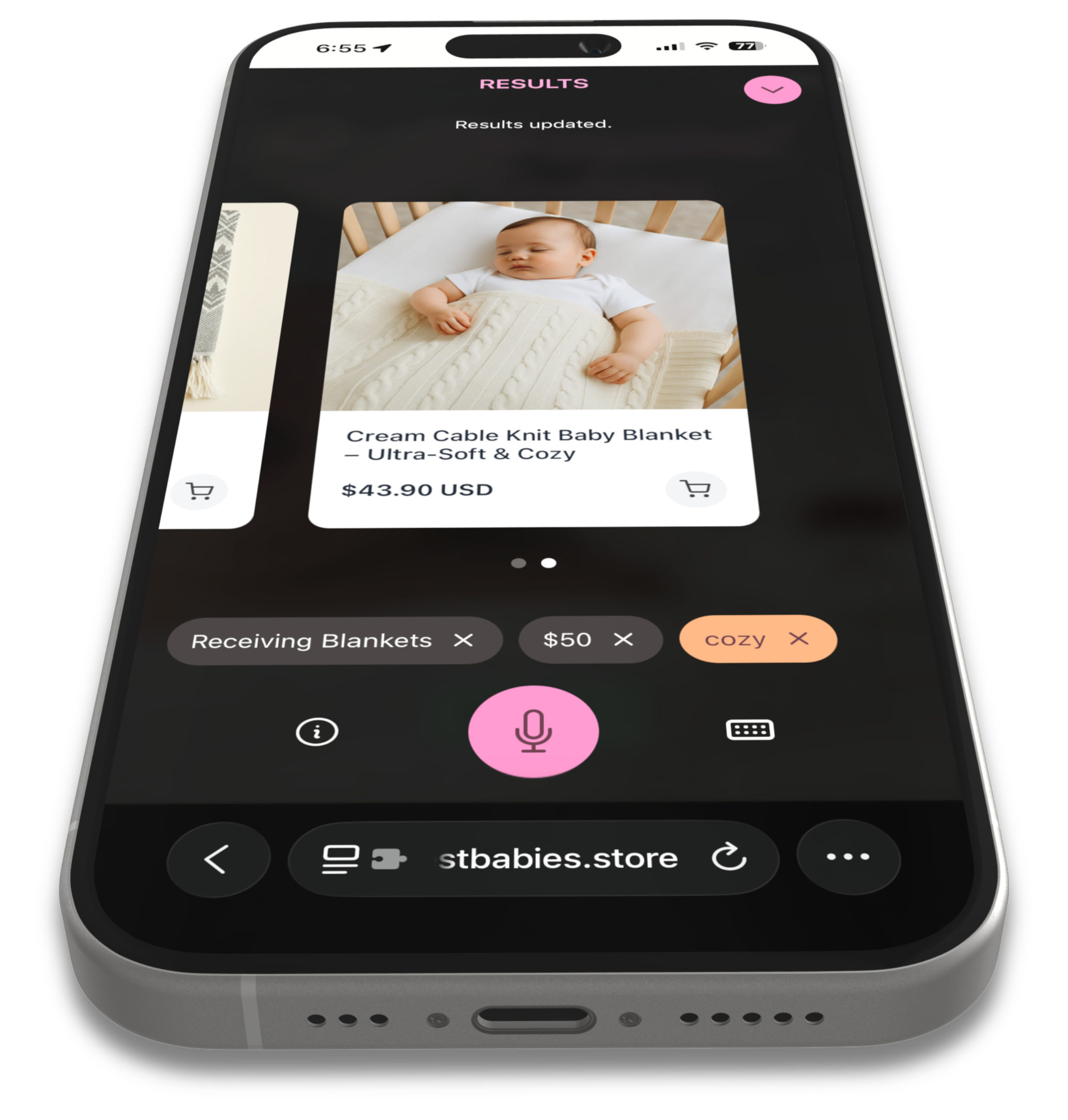 Our Commerce Accelerator transforms e-commerce into a guided, personalized journey. Customers can interact through voice or chat, explore curated looks, get context-aware recommendations, process returns and complete transactions, all with the help of an intelligent sales associate agent embedded in your website.